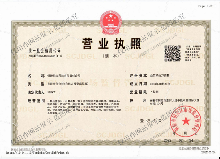 公司:銅陵長(zhǎng)江科技有限責(zé)任公司    電話:0562-2876699    地址:銅陵市淮河大道中段雙星國(guó)際大廈南樓1104號(hào)